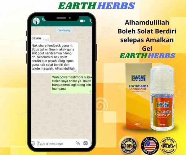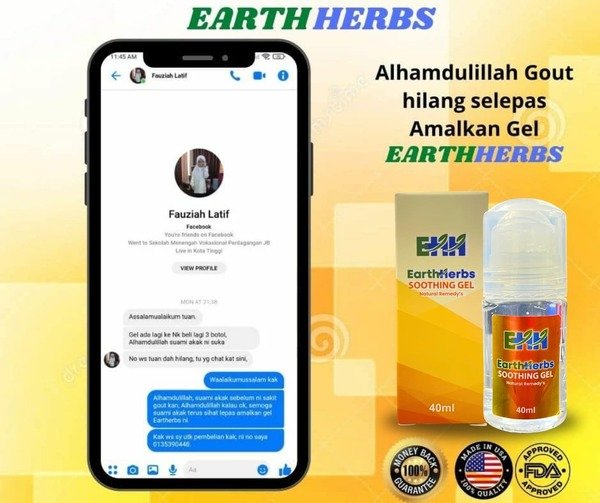 “Alhamdulillah gout pun dah hilang selepas amalkan Gel EARTHHERBS ni..”