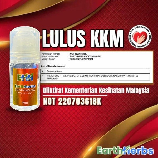 Eartherbs Didaftar di Bawah KKM dan No. Rujukan adalah NOT220703618K. EarthHerbs tidak mengandungi sebarang barang terlarang atau bahan dari haiwan.